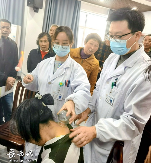 村民刘双学,因为做农活扭伤了腰,以为没啥大事,但一做事就腰痛。听说县里专家来免费义诊,他赶紧过来看诊。专家给他扎针、拔火罐后,他觉得弯腰转背灵活自如,没有那种难以忍受的疼痛感了,他一个劲地感谢医生:“谢谢!你们真好,人好心美技术棒。”
